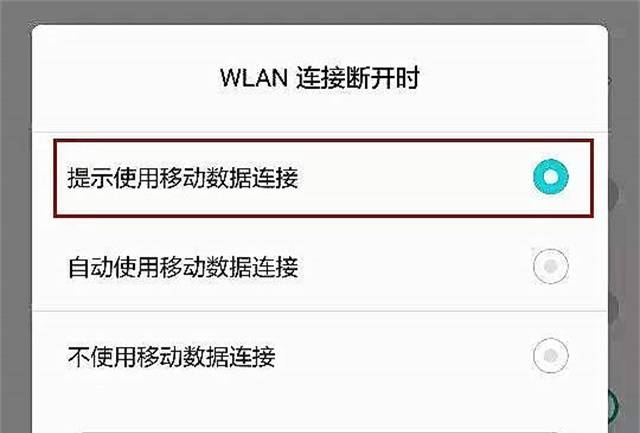 1、设置手机切换到流量时必须提示:进入手机【设置】-【移动网络】-【WLAN/移动数据连接切换提示】,选择【提示移动数据连接】